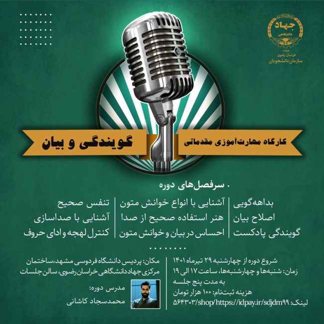کارگاه مهارت آموزی مقدماتی؛ گویندگی و بیان
