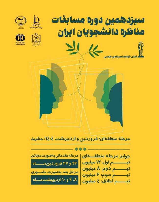سیزدهمین دوره مسابقات مناظره دانشجویان اخبارتوسط راحله رفعتیآوریل 9, 2025ارسال دیدگاهفروردین و اردیبهشت 1404